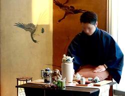 京都・清水寺近くの茶室ギャラリー玄庵で開催された茶会サロン「お茶っこ」。伏見人形の布袋さんや萬福寺ゆかりの煎茶文化、京焼や虎屋の羊羹を通じて、参加者とともに京都の伝統文化を味わい語り合う温かな時間となった。