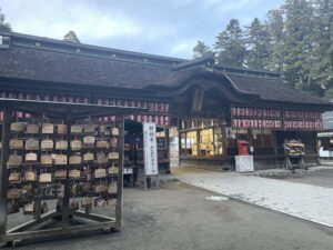 私は拝殿の前に立ち、社殿の細部を眺めながら、祈りの場としての静けさと、建築物としての力強さに圧倒された。