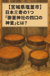 【宮城県塩釜市】日本三奇の1つ「御釜神社の四口の神釜」とは?読み方や松尾芭蕉との関係、藻塩や鹽竈神社をたずねる