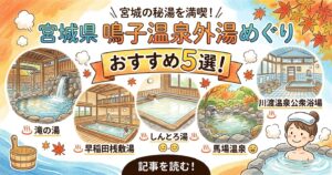 - 2026年3月29日地域文化旅/訪問・体験記宮城県の鳴子温泉外湯めぐりおすすめ5選!滝の湯、早稲田桟敷湯、しんとろ湯、馬場温泉、川渡温泉公衆浴場など解説